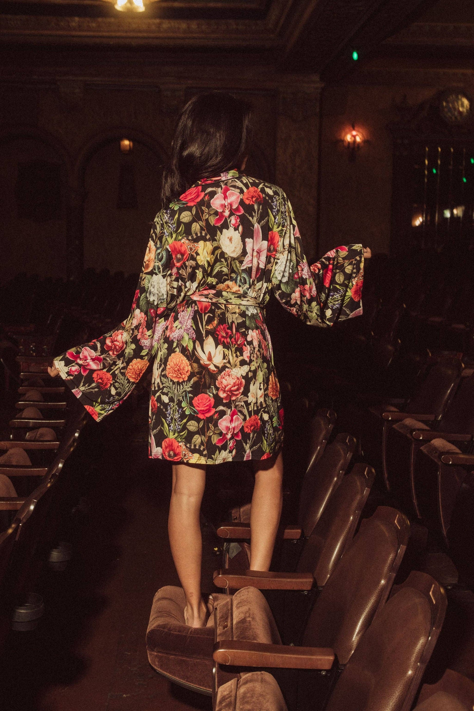 Classic short robe made with ultra soft modal/spandex jersey digitally printed with our exclusive "garden of eden" print designed by Kilo Brava featuring florals, butterflies, and hidden snakes.