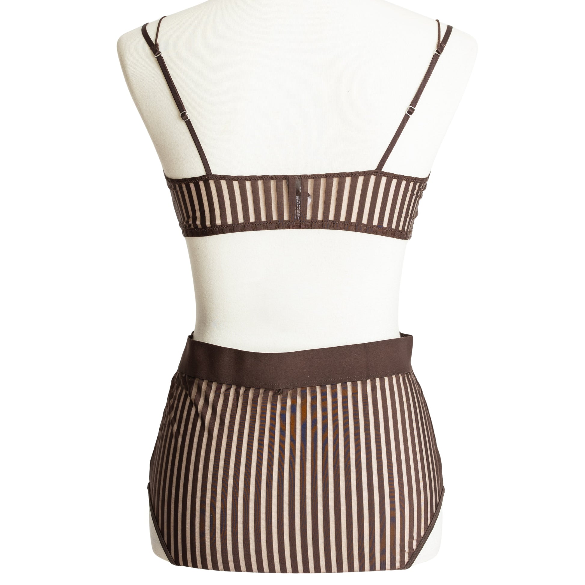 Inspired by the architectural rhythm of New York City, meet the Vertigo Bralette. This square neckline bralette is the perfect sleek piece of lingerie to wear under your trendy wardrobe. The sheer and opaque striped microfiber is unlined for maximum contrast. Feel invincible and comfortable when paired with the Vertigo High-waist Brief for a striking set.